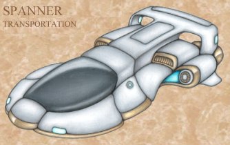 This is the term given to a broad range of light recreational and commercial craft. These versatile vehicles could traverse nearly any terrain, including water, by means of low-altitude hover fans, though special hyper bridges, or 'spans', were created specifically for their high speed capabilities. Reaching speeds of roughly two hundred miles per hour, spanners afford the ultimate smoothe ride, requiring a low, sleek design and aelerons in order to cut wind resistance. Most spanners are (or were) environmentally sealed, with their own air-recyclers and environmental controls, allowing them to operate in any weather, hot or cold. Their hydrogen fusion engines are powered by ordinary water and a complex catalytic system. Like many of the lighter contructions of the ancient age, spanner hulls are made of Z1, allowing them to heal minor damage and ignore the effects of aging. All materials vulnerable to corrosion are either coated in gold, or sealed by inert argon gas. They thrum softly when active, a sound akin to the purr of a very large feline.