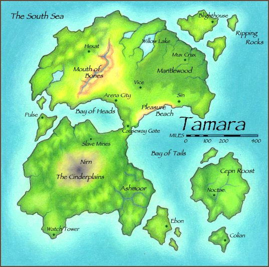 Off the western coast of Midland lies the Tamaran Empire, a chain sub-tropical islands ruled by the nefarious Decider. She is supposedly a Creator, the last of her kind, who took over the islands during the Spiral occupation and has since forged her own kingdom of of corruption and gluttonous depravity. What was once a major stronghold of Believers is now a breeding ground for pirates, slavers, and assassins, not to mention the location of one of the dreaded Spiral collectors. Tamara is guarded by a powerful fleet of ships which defends not from invaders but from the multitudes of common folk trying to reach the fabled shores of Pleasure Beach. You see, passage to Tamara is by invitation only.
