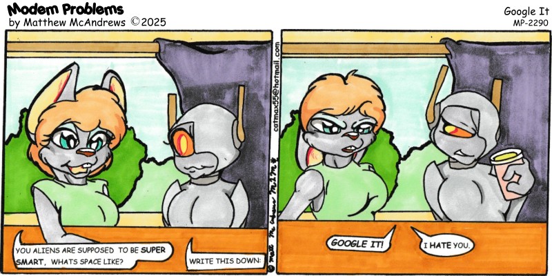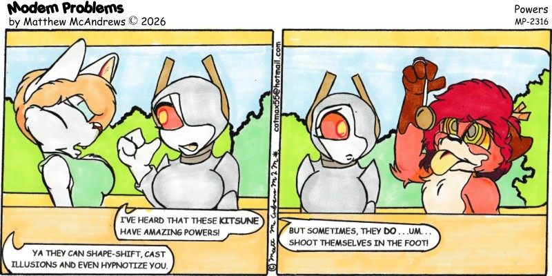 As some of our readers know, the artist and author of the Modem Problems comic strip, Matt McAndrews, is a Disabled Veteran, having been shot twice and blown up once. His friends Shahla Fadaie and her kids started the Veterans Healing Camp after her son, Forest came come from the war. A camp for Vets and others in a mini farming town in Reno, Nevada. Please click on the link above or drop them an email at info@veteranshealingcamp.org and help if you can. These guys are poor as church mice and every penney and dollar helps!