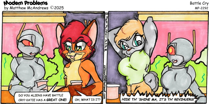 As some of our readers know, the artist and author of the Modem Problems comic strip, Matt McAndrews, is a Disabled Veteran, having been shot twice and blown up once. His friends Shahla Fadaie and her kids started the Veterans Healing Camp after her son, Forest came come from the war. A camp for Vets and others in a mini farming town in Reno, Nevada. Please click on the link above or drop them an email at info@veteranshealingcamp.org and help if you can. These guys are poor as church mice and every penney and dollar helps!